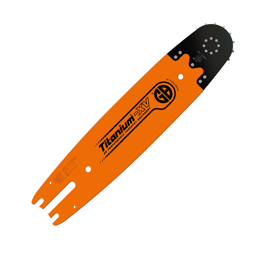 The newly designed GB® Titanium® -XV® professional harvester bar now comes with a 15 tooth nose sprocket, which allows for higher chain tensions that improve efficiency. The patented 15 tooth sprocket and unique oil feeder grooves work together to reduce friction and wear which extends the life of the tip. 2.0mm/0.080"
